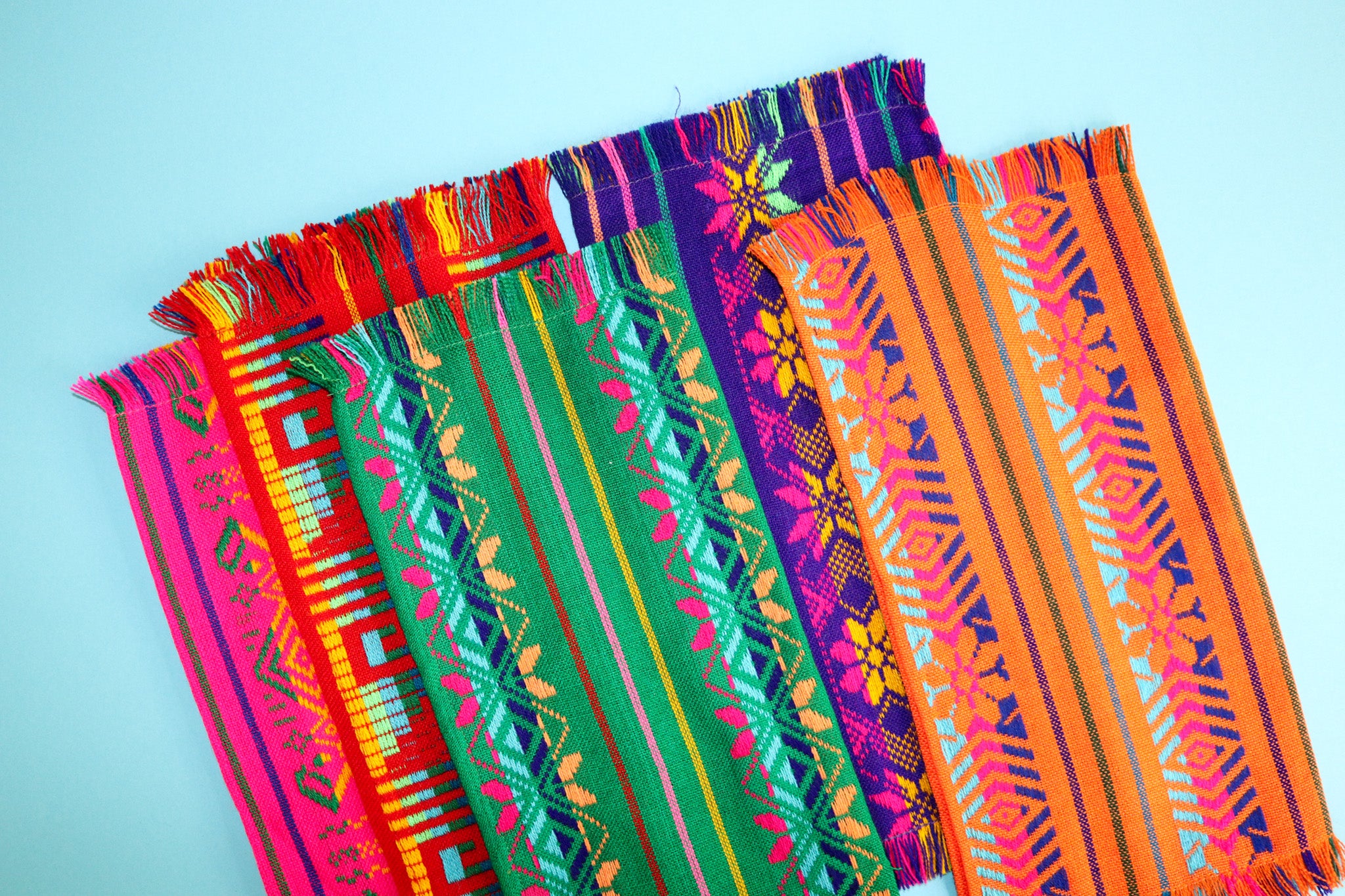 Mexican Fabric Napkins, Bulk Set of 6 Tribal Assorted Colors
