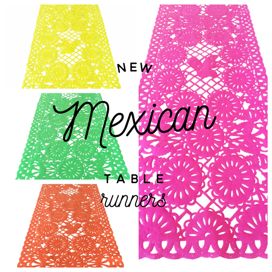 Mexican Fabric Table Runner Papel Picado Design Lime Green